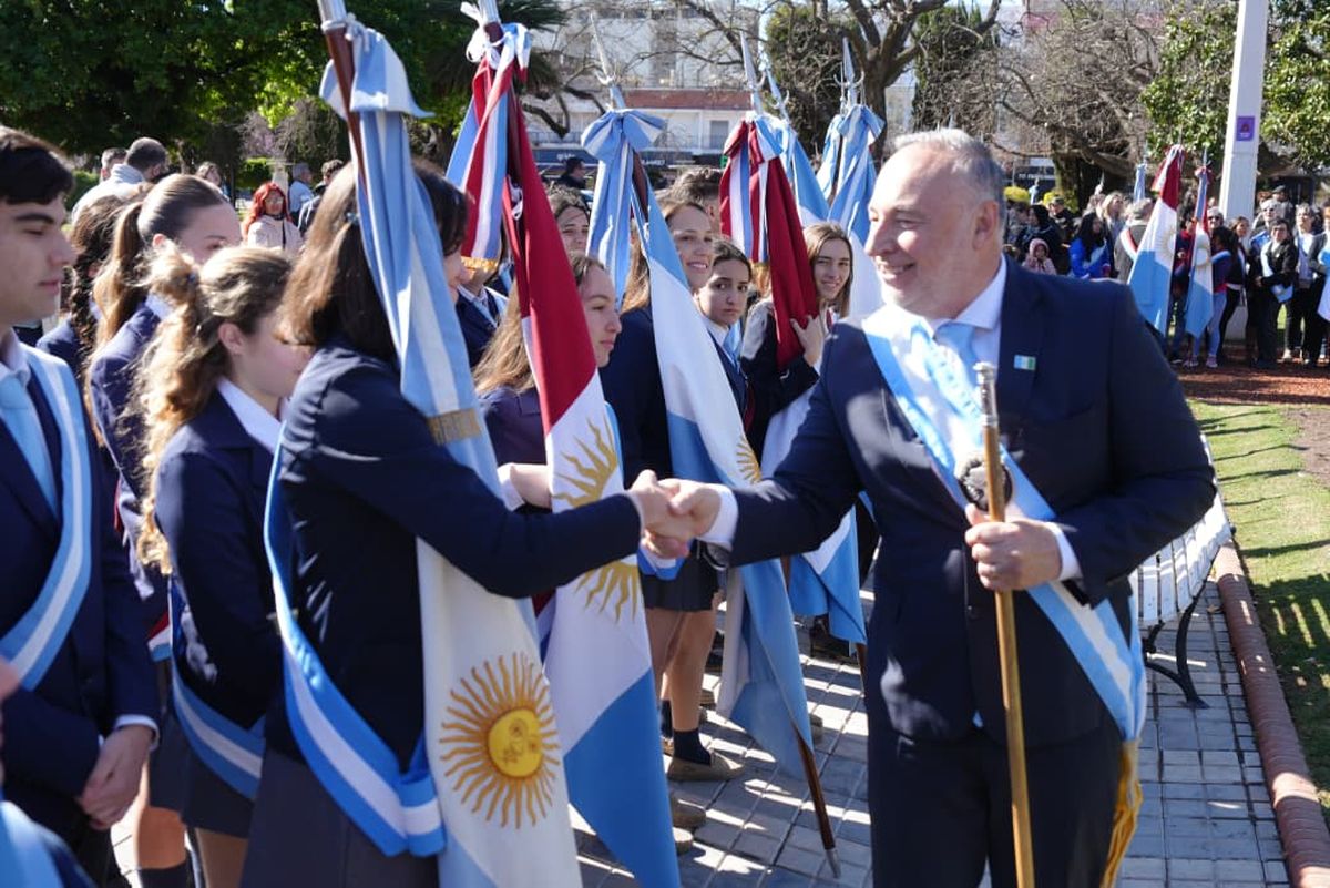 Ante abanderados y escoltas, Accastello remarcó el rol de la educación como eje del desarrollo local. “La primera institución de la ciudad fue una escuela. Hoy contamos con 57 instituciones educativas de todos los niveles”.