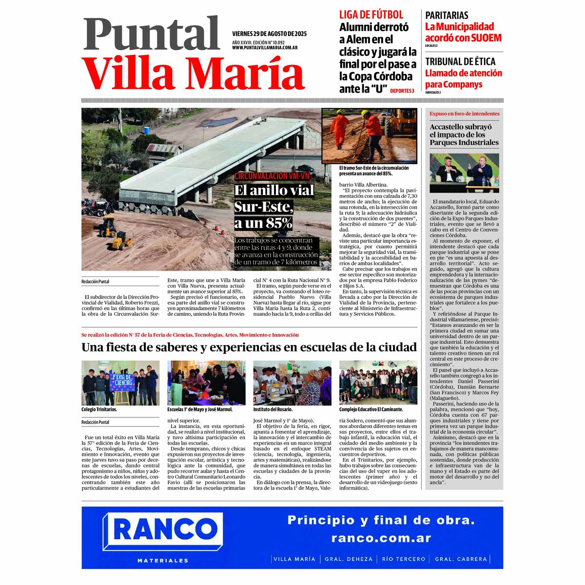 Villa María | Accedé a la edición digital de Diario Puntal Villa María Te acercamos el diario completo para que no te pierdas ninguna de nuestras notas 29 de agosto de 2025 - 08:18