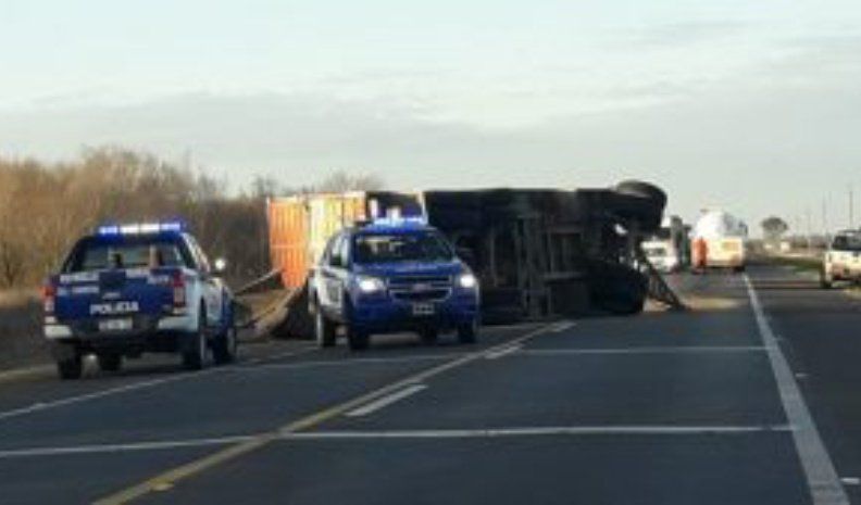 El accidente ocurrió ayer por la tarde cuando el transporte de cargas reventó un neumático derivando en un giro “de tijera” del acoplado que tiraba y en el posterior vuelco del mismo.