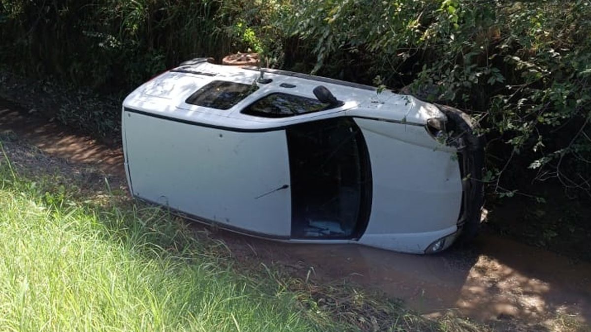 Un hombre con lesiones leves fue el saldo de un increíble accidente que tuvo lugar ayer a la tarde en esta ciudad, protagonizado por un utilitario marca Renault Kangoo, vehículo que terminó volcado en el interior de una zanja, al costado de la calzada.