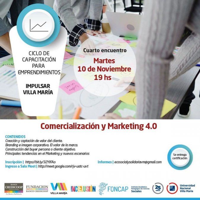 El martes 10 de noviembre tendrá lugar el cuarto encuentro del ciclo de capacitación para emprendimientos Comercialización y Marketing 4.0. Impulsar Villa María, es la denominación de la iniciativa que se dedicará, en esta ocasión, a: