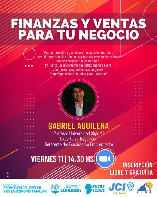 La Cámara Junior Internacional (JCI) Villa María realiza hoy el “Workshop: Finanzas y Ventas para tu Negocio”, con la disertación de Gabriel Aguilera, docente de la Universidad Siglo XXI y referente del Ecosistema emprendedor de Córdoba.