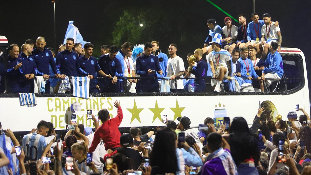La Selección campeona del mundo en Qatar 2022 llegó al país a las 2.24, a través de un vuelo de Aerolíneas Argentinas, y fue recibida por una multitud que acompañó el paso del micro que la trasladó desde el aeropuerto hasta el predio de la AFA.