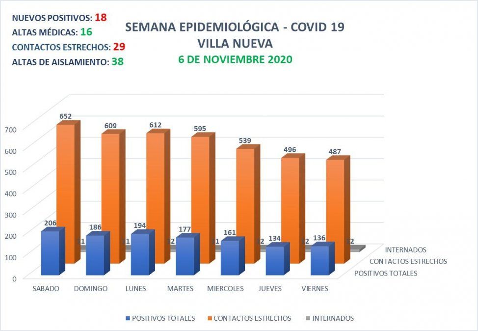 En las últimas 24 horas, la ciudad de Villa Nueva sumó 18 nuevos casos de coronavirus, y se otorgaron 16 altas médicas.