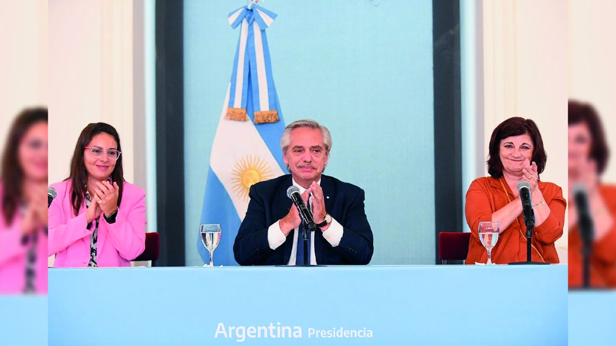 Del acto participaron también las ministras Raquel "Kelly" Olmos, de Trabajo, y Ayelén Mazzina, de Mujeres, Géneros y Diversidad.
