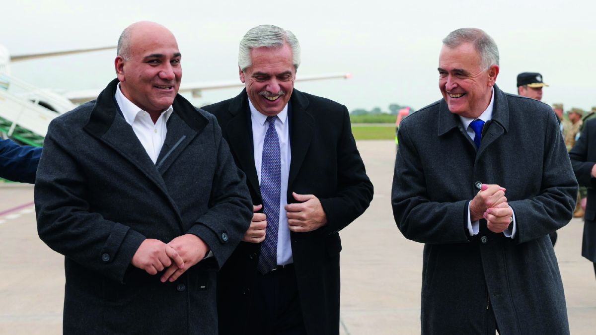 El presidente Alberto Fernández felicitó hoy en Tucumán al gobernador, Juan Manzur, y a quien será su sucesor, el recientemente electo Osvaldo Jaldo, tras el triunfo del domingo pasado y recorrieron obras de infraestructura.
