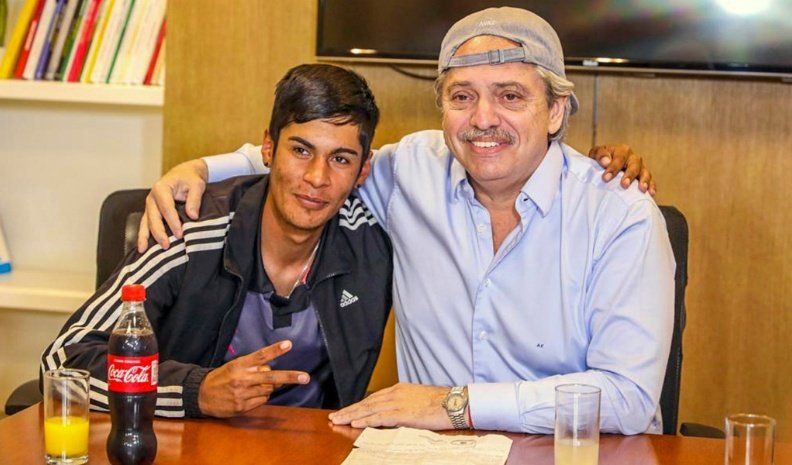 Durante el encuentro en horas del mediodía, Fernández le expresó su apoyo al joven y se fotografió abrazado a él con una gorra al revés, imagen que rápidamente se volvió viral.