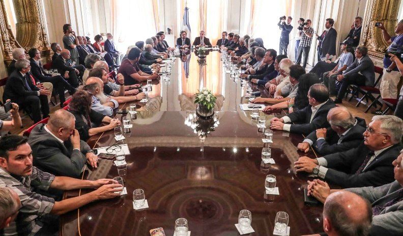 Participaron también el presidente de la Unión Industrial Argentina, Miguel Acevedo; representantes de cámaras empresariales, entre las que se contaron la Confederación Argentina de la Mediana Empresa (Came), la Asociación de Pequeñas y Medianas Empresas (Apymel), la Bolsa de Cereales; y de movimientos sociales, la Corriente Clasista y Combativa (CCC), Barrios de Pie y Frente Popular Darío Santillán.