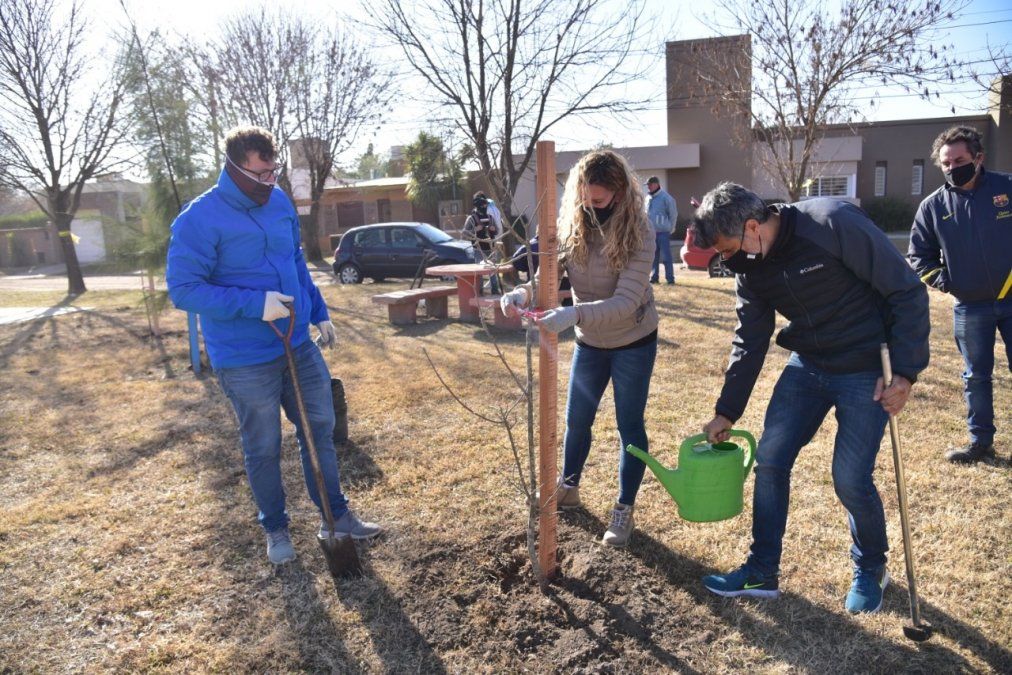 Fueron 10 fresnos y 10 aguaribay los ejemplares que la Subsecretaría de Ambiente, perteneciente a la Secretaría de Ambiente, Obras y Servicios Públicos, plantó en el lugar a fines de embellecer y mejorar las condiciones ambientales para un desarrollo sustentable de la ciudad. De la colocación de las especies también participaron representantes del Centro Vecinal del barrio.