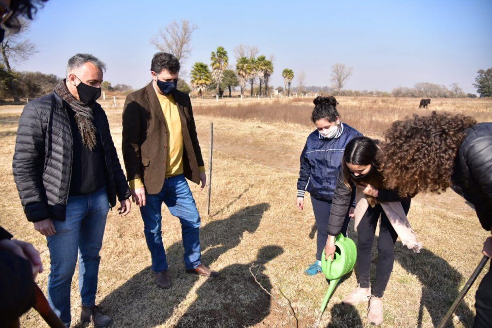 En la plantación, también participaron el jefe de Gabinete, Héctor Muñoz, el secretario de la cartera educativa, Rafael Sachetto, y el titular del área de Ambiente, Germán Tissera.