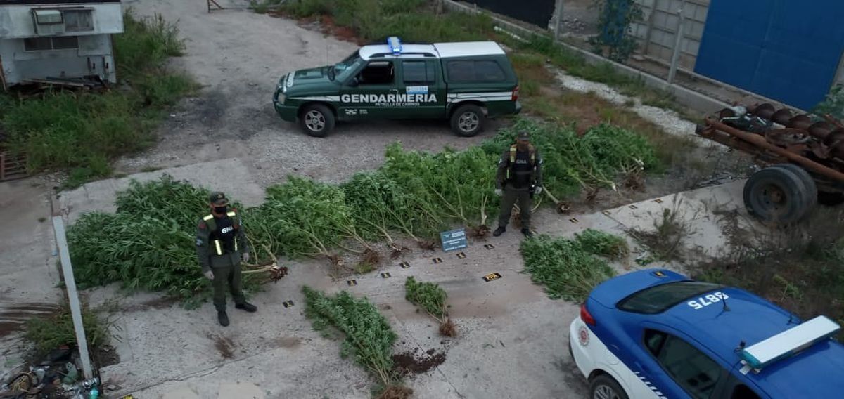 En el lugar, donde residen dos hombres de 59 y 31 años de edad, se procedió al secuestro de 16 plantas de marihuana de entre 1.5m a 3.35m de alto, aproximadamente 165 semillas de dicha planta, una balanza electrónica, 260 gramos aproximadamente de cogollos maduros, 6.880 pesos en efectivo, una carabina calibre 22, munición de escopeta, tres celulares, siete cigarrillos artesanales y 15.9g de hojas compactadas.