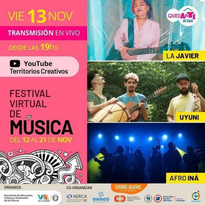 Hoy, jueves, el "Festival Virtual de Música" presenta a "La Javier", "Uyuni" y "Afro Iná". La propuesta pertenece al programa “QuedArte en Casa” que impulsa el municipio en conjunto con otras instituciones.