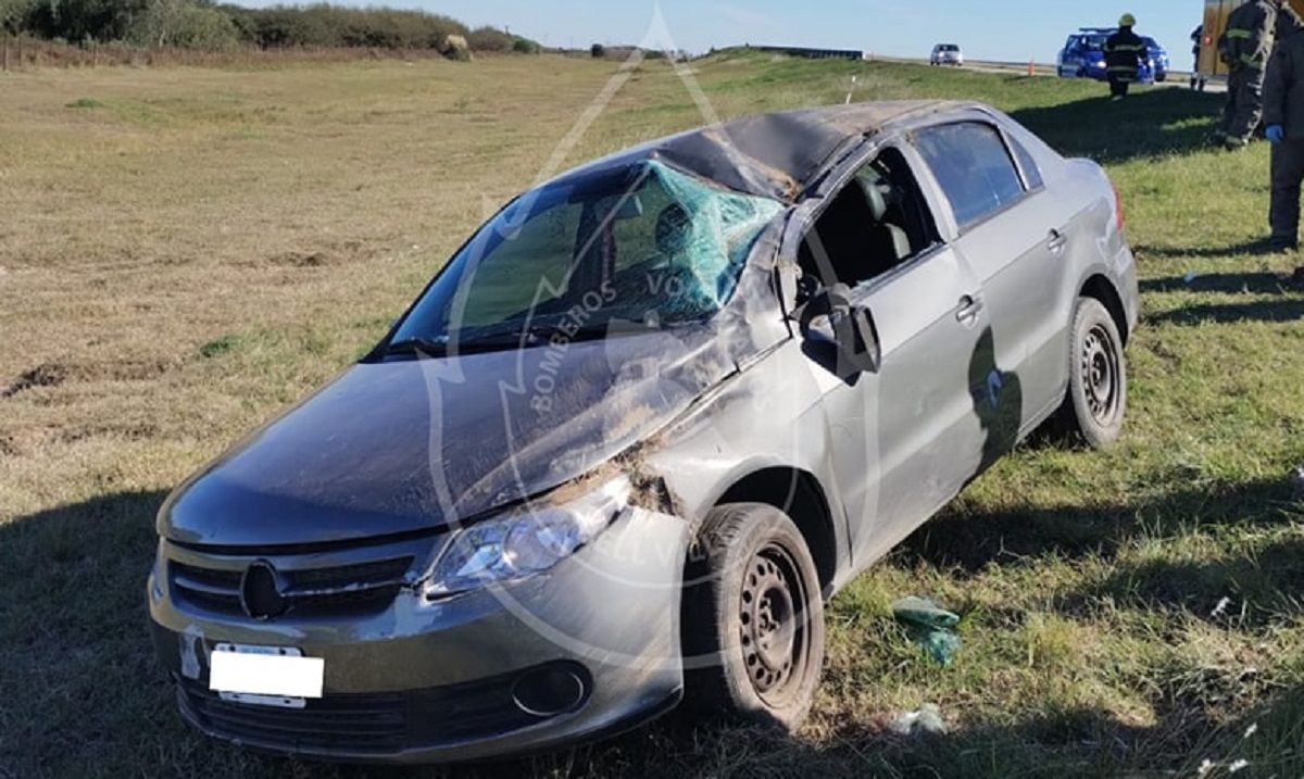 En horas del mediodía de ayer, sobre el kilómetro 495 de la Autopista 9, en inmediacioes de la ciudad de Bell Ville, se produjo el accidente en solitario de un automóvil marca Volkswagen Voyage, vehículo que fue a parar a la banquina sur.