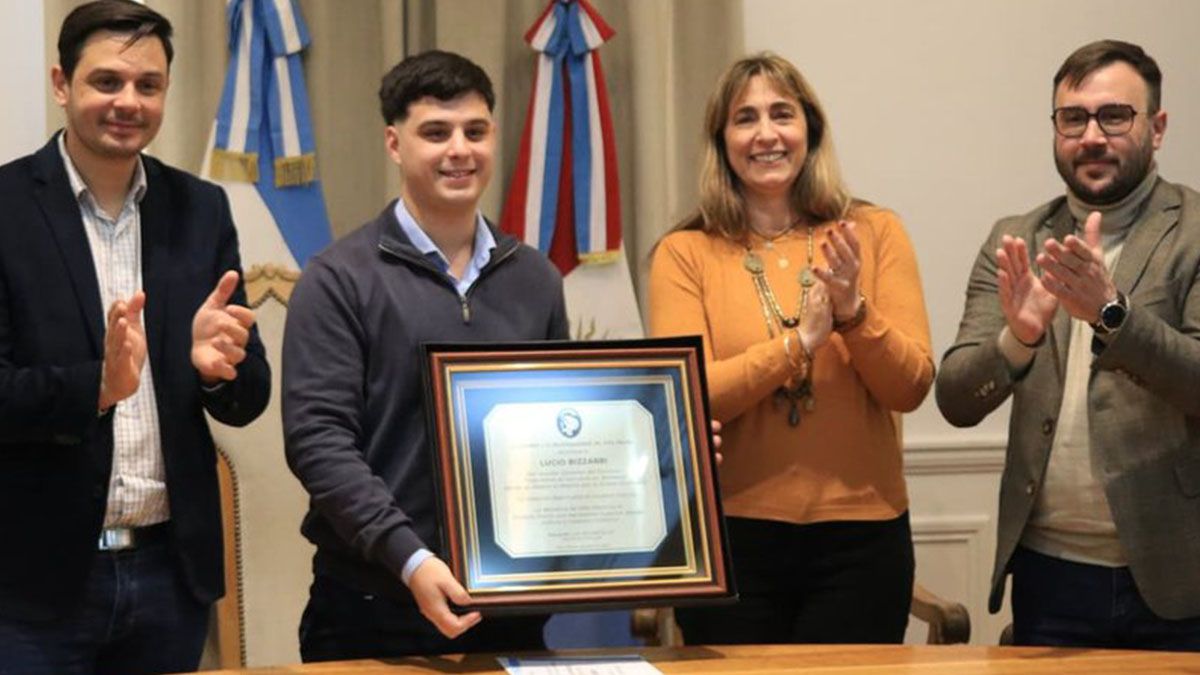 Lucio Bizzarri, el joven creador de la bandera oficial de la ciudad, fue distinguido este viernes en un acto que incluyó reconocimientos provinciales y la entrega de una computadora como premio.