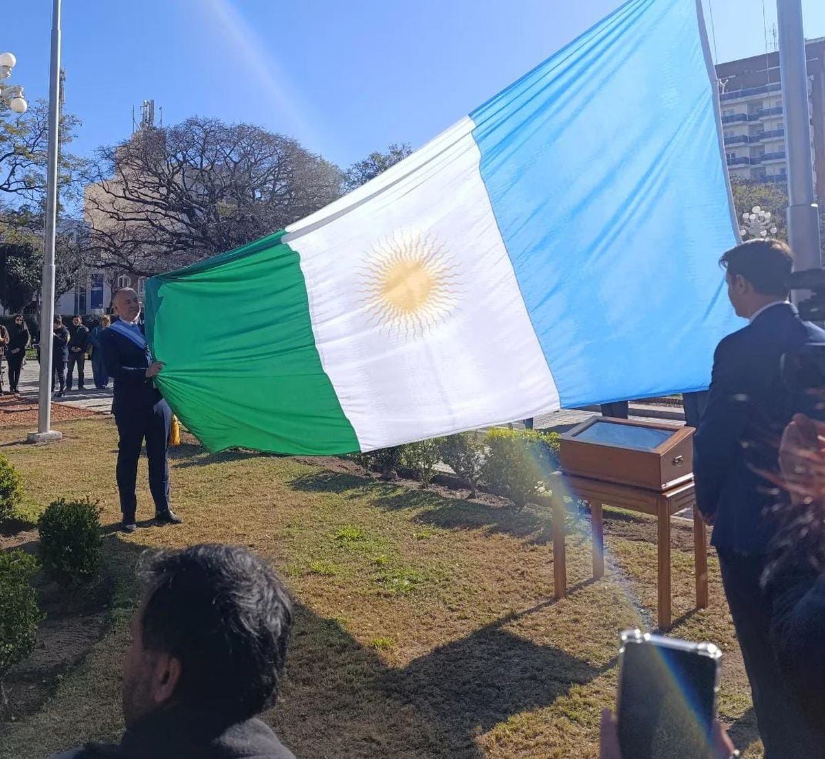 El momento central se dio cuando la bandera local, vestida de celeste, blanco y verde, con un radiante sol en el centro, fue izada por primera vez para convertir la jornada en histórica.