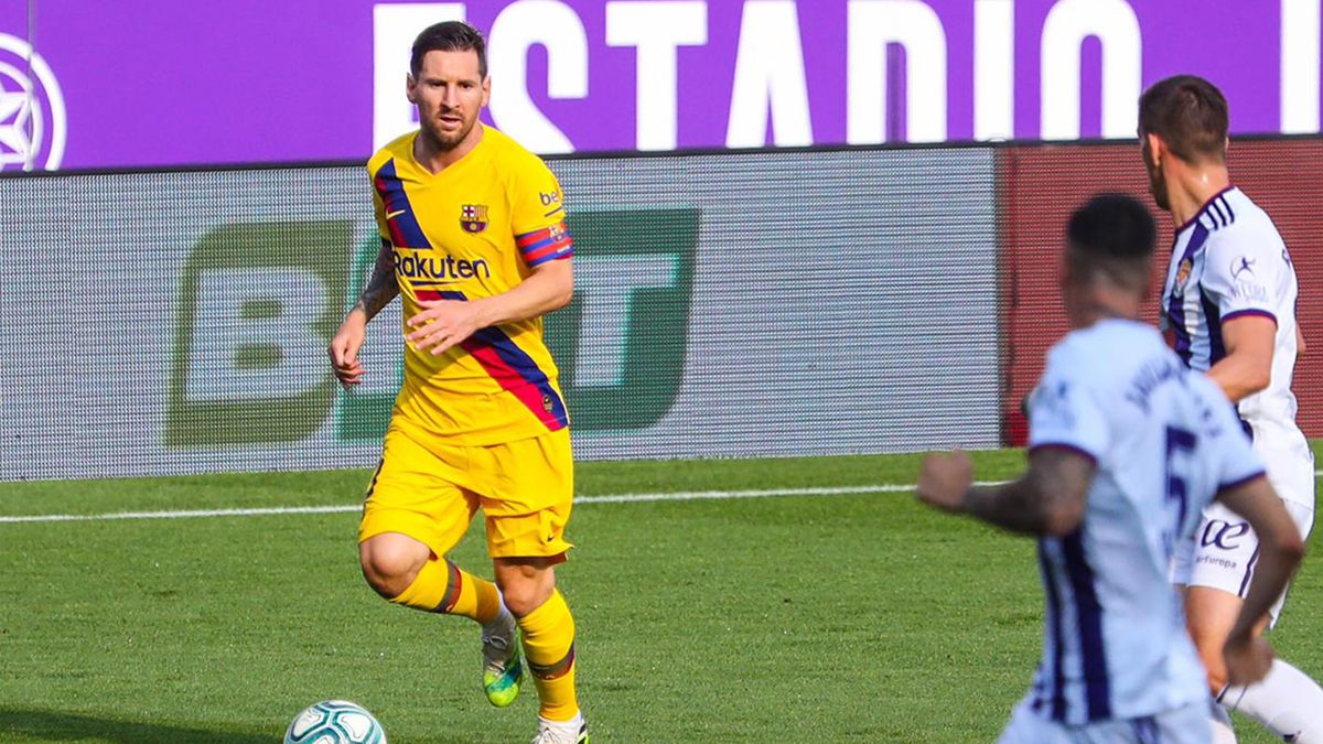 Barcelona, con un nuevo récord del astro rosarino Lionel Messi, le ganó hoy de visitante a Valladolid, 1 a 0, y quedó a un punto del líder, Real Madrid, que el lunes cerrará en cancha de Granada la 36ta fecha de la liga española de fútbol de primera división.