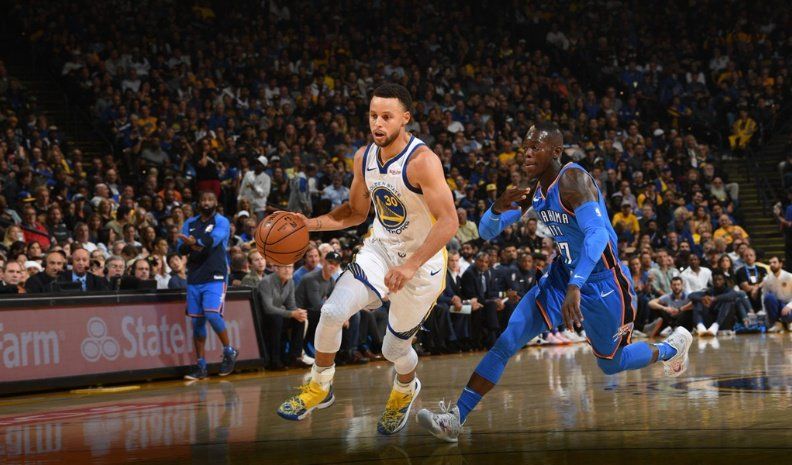 Curry anotó 32 puntos con nueve asistencias y ocho rebotes, mientras que Durant terminó con 27 tantos, ocho capturas y seis pases para anotación.