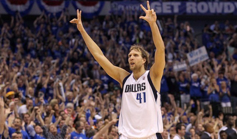 Nowitzki llegó a la NBA en 1998, cuando fue seleccionado por los Milwaukee Bucks en la novena posición del Draft, pero inmediatamente fue traspasado a los Mavericks.