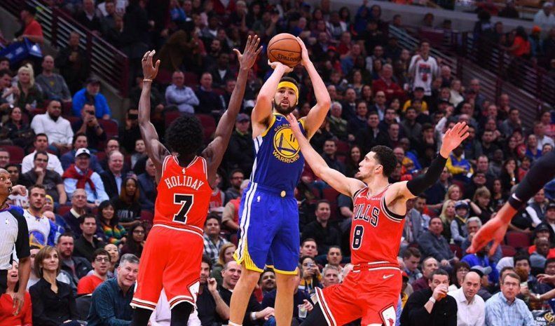 Klay Thompson rompió este lunes el récord de la NBA de su compañero Stephen Curry con 14 disparos de tres puntos para totalizar 52 tantos y llevar a los campeones Golden State Warriors en una victoria de 149-124 sobre los Chicago Bulls.