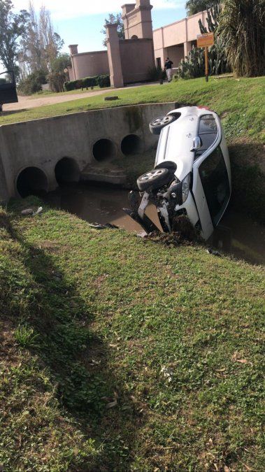 Ante esta desesperante situación, el auto fue directo a una profunda zanja, donde cayó hasta quedar “de costado”.