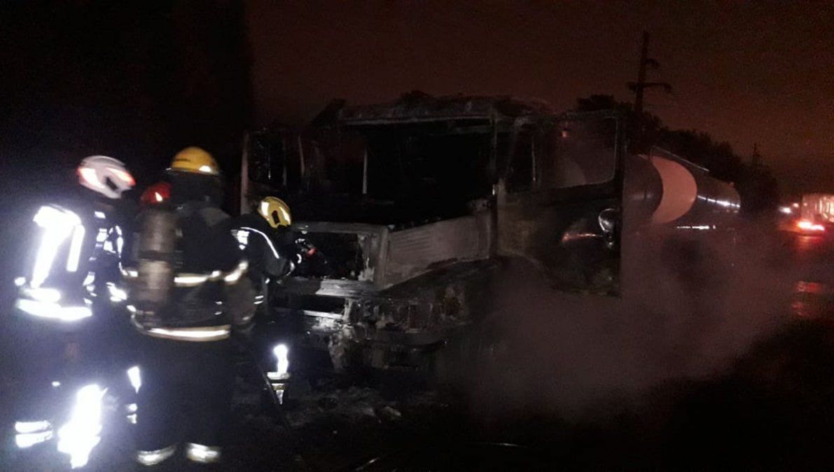 Bomberos Voluntarios informaron un incendio de un camión cisterna en cercanías de la Fabrica Militar de Pólvora y Explosivos.