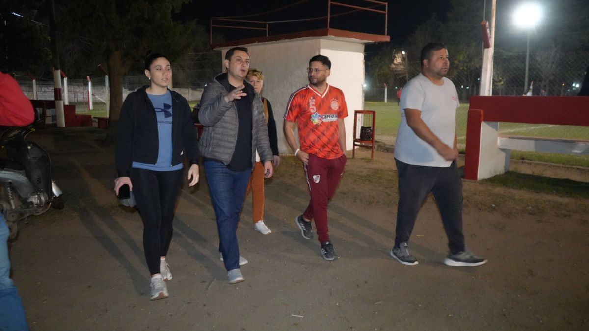 Durante la visita al predio deportivo ubicado en Paso de Los Andes 1733, Marcos Bovo dialogó con Jonathan Calderón y miembros de la comisión, entre ellos Lorena Paviolo, Esteban Silvano, Roque Pintos y Gloria Fernández.