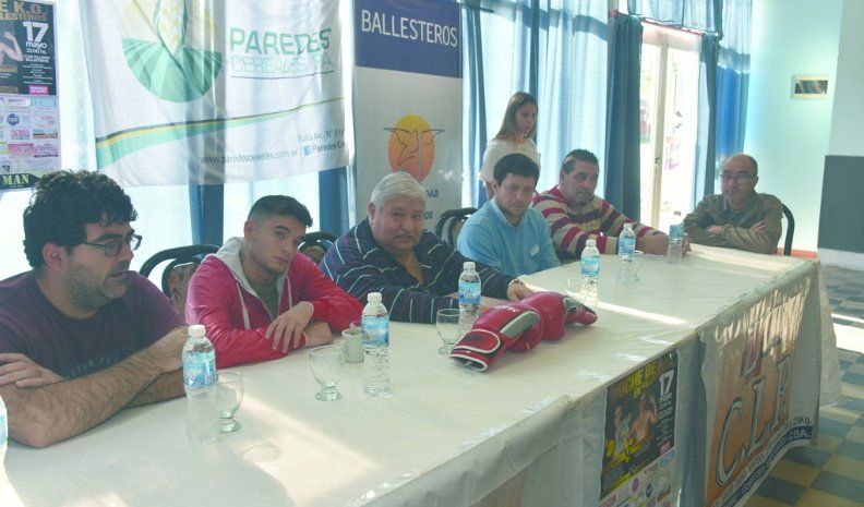 En la conferencia de prensa estuvieron el presidente del club Marcos Aghemo, el secretario de gobierno de Ballesteros Emiliano Almada, el boxeador Diego Perelló, su entrenador Sergio Merani, el promotor Ricardo Rivera y Oscar «Pichón» Albornoz, a cargo de la organización.