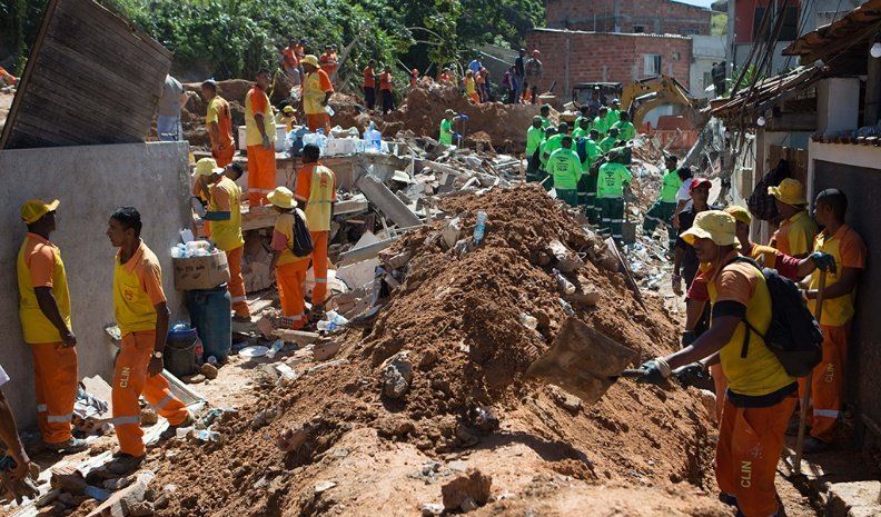 Cerca de 200 efectivos, entre ellos bomberos y miembros de la policía militar de Río de Janeiro, trabajaron para hallar entre los escombros rastros de desaparecidos, con la ayuda voluntaria de vecinos y curiosos que se acercaron al lugar, un cerro de casas precarias, a menudo construidas en terrenos inestables.