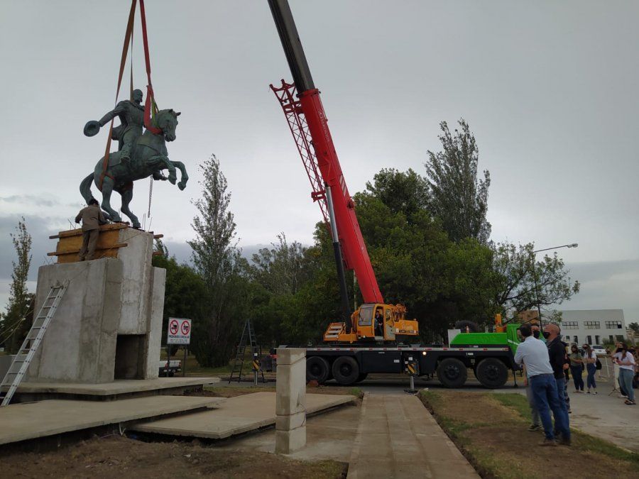 La tarea se realizó inmediata al arribo de la figura a la ciudad, la cual fue situada sobre la base dispuesta para tal fin en calles Sucre y Bulevar España.