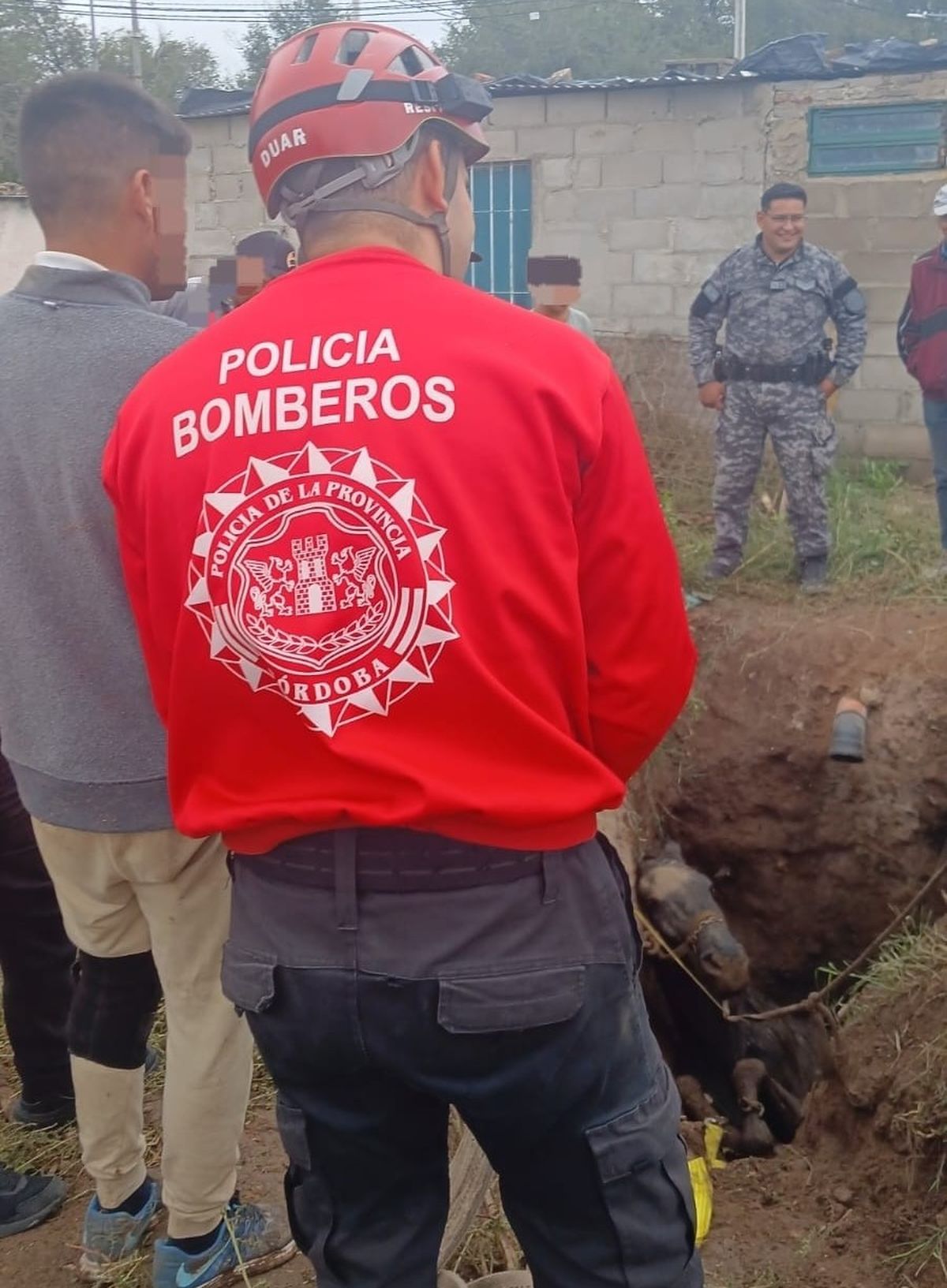 Efectivos del Departamento de Unidades de Alto Riesgo (DUAR) rescataron a un equino que había caído en un pozo ciego en desuso en barrio Los Filtros.
