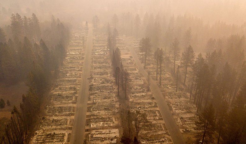 El incendio "Camp Fire", que comenzó el jueves de la semana pasada cerca de la pequeña ciudad de Paradise, ha devastado cerca de 57.500 hectáreas y el humo que genera se desplazó hasta San Francisco, a más de 200 km al sur de Paradise.