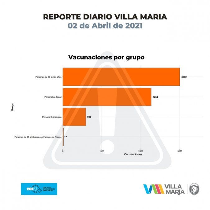 Es importante destacar que, en cuanto a la vacunación contra el covid, en Villa María ya son 5.877 las dosis aplicadas. Del total de inmunizaciones, 4.400 fueron realizadas por la Secretaria de Salud del municipio, representando el 74%. El resto de las dosis fueron aplicadas por el Hospital Pasteur.