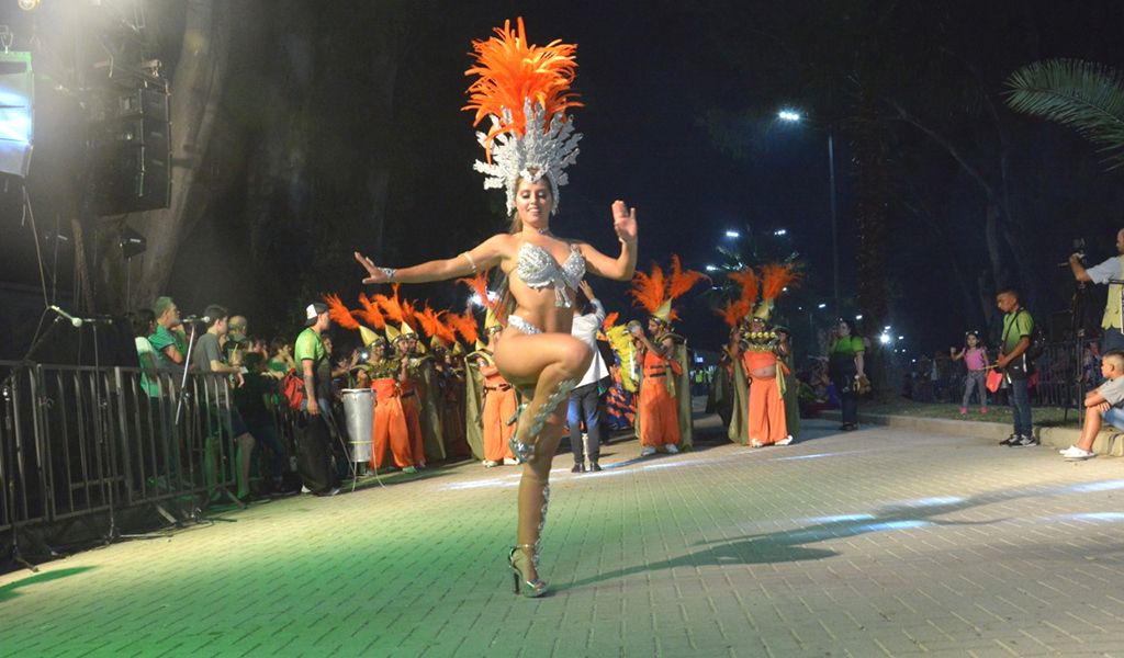 Luego, tras la entrada de los niños y jóvenes pertenecientes al Área de Inclusión del Municipio que coordina Mónica Gramaglia, pasaron las comparsas de los cuatro barrios participantes. Y una vez más, Flavia Pérez de la comparsa del San Antonio, demostró por qué es la mejor pasista de las últimas cuatro ediciones del carnaval: puro movimiento, ritmo, sensualidad y belleza. Su barrio, el actual campeón, fue el primero en salir a la pista con una representación de “Las Mil y una Noches” y ella, Flavia, se convirtió en la materialización de la Scheherezade que sueña el público.