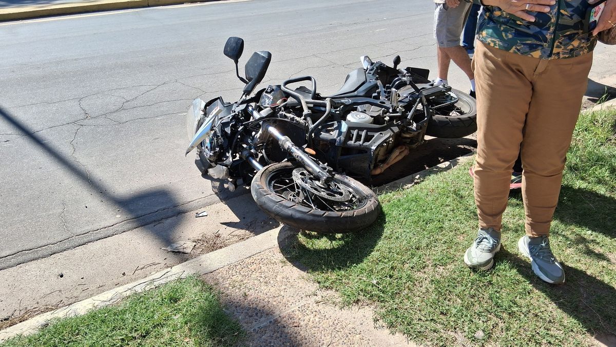 Un Renault Kangoo y una motocicleta de alta cilindrada chocaron este jueves en la intersección de Carranza y Comercio.