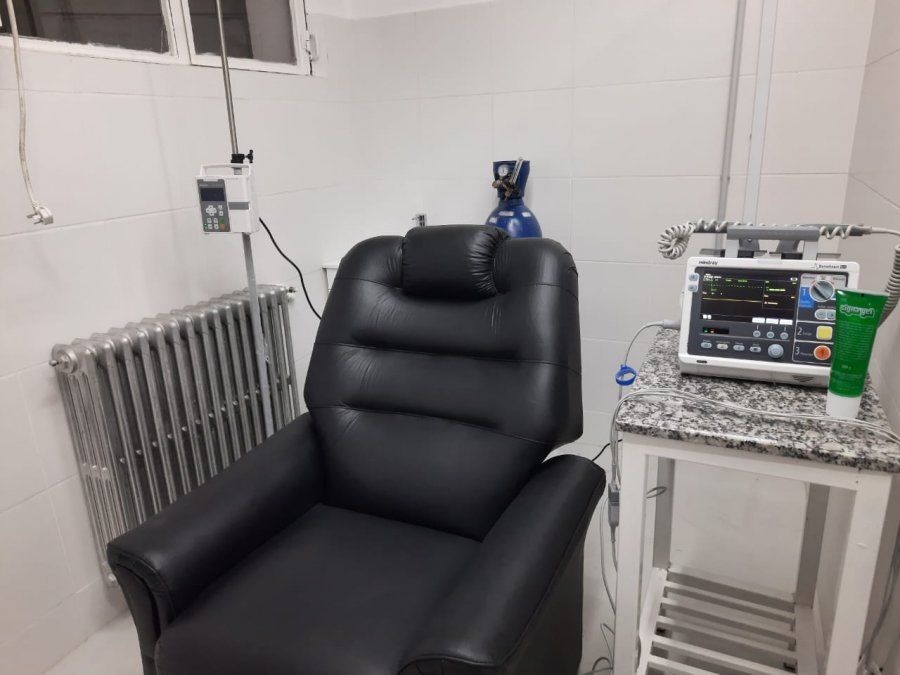 Personal de la Asistencia Pública realizaba el primer tratamiento por goteo a un vecino de la ciudad que daría lugar a posteriores intervenciones. La instancia tuvo lugar en las instalaciones del edificio en donde el paciente, además de recibir la droga mencionada, fue monitoreado.