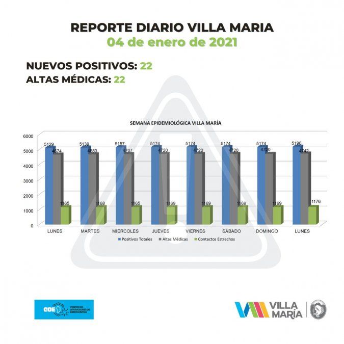 En lo que respecta a esta ciudad, el Municipio local dio cuenta de 22 nuevos contagios y de 22 pacientes recuperados.