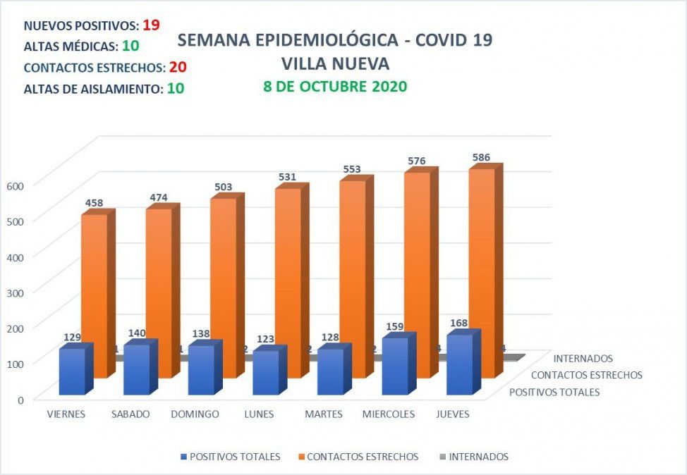 La cantidad de contactos estrechos actualmente asciende a 586 personas.