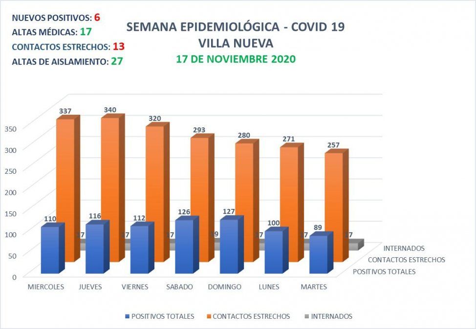 En las últimas 24 horas, la ciudad de Villa Nueva sumó 6 nuevos casos positivos de Covid, en tanto que se otorgaron 17 altas médicas.