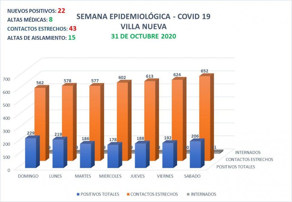 La cantidad de contactos estrechos actualmente es de 652 personas. Todos casos que se encuentran en vigilancia epidemiológica para su cumplimiento efectivo de la cuarentena, hasta tanto se reciban los resultados de los correspondientes hisopados.