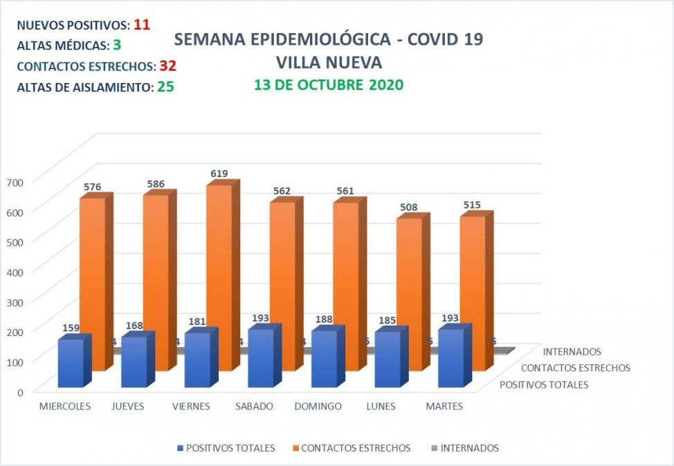 En las últimas 24 horas, la ciudad de Villa Nueva sumó 11 nuevos casos positivos de Coronavirus, en tanto que se otorgaron 3 altas médicas.