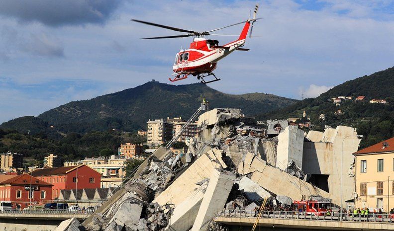 Una treintena de personas perdieron la vida y numerosas resultaron heridas en Génova. Unos 30 vehículos se vieron afectados y algunos cayeron al vacío desde 45 metros