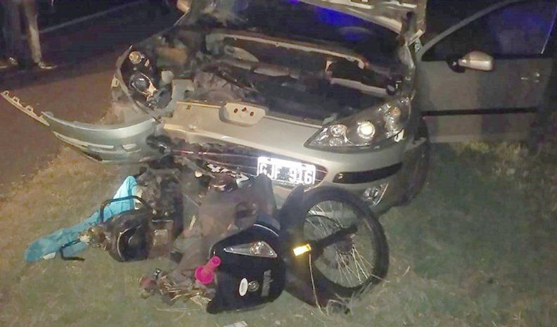 Allí, por causas que intentan establecerse, colisionaron una moto con un automóvil. Como consecuencia del impacto, el conductor del rodado menor cayó sobre la banquina oeste de la carpeta asfáltica, mientras que el auto arrastró la motocicleta unos 80 metros aproximadamente, por lo que quedó encajada en la parte delantera del auto.