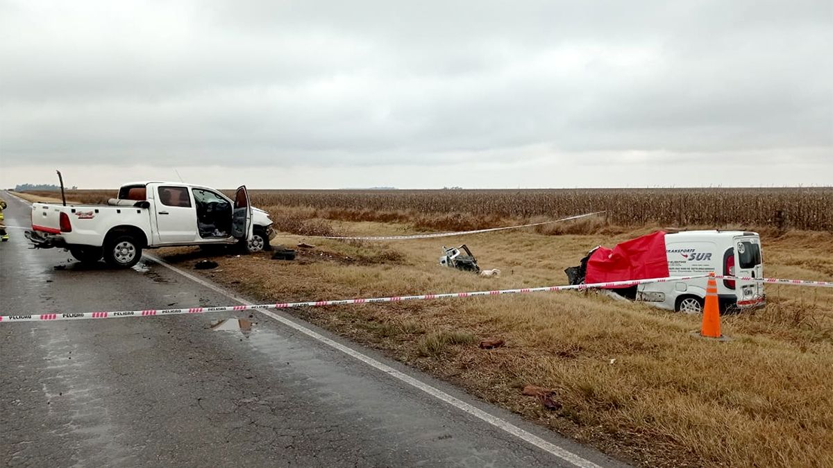 El trágico siniestro vial se registró alrededor de las 12.10 en el kilómetro 140 de la ruta provincial n° 4 cuando por causas que se tratan de establecer se produjo la colisión entre una Fiat Fiorino y una Toyota Hilux.