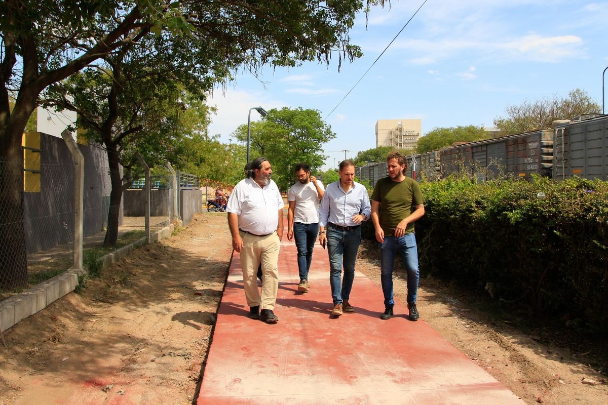 Puntualmente, la obra que supervisó ayer Gill comprende la ejecución de 200 metros de ciclovía por detrás del Salón Bomarraca, junto al predio ferroviario, entre calle San Luis y bulevar Sarmiento.