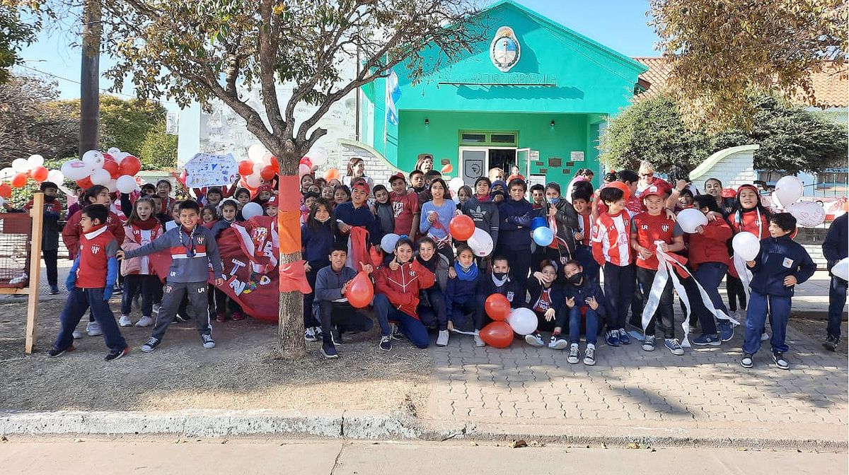 Becchero remarcó que “el festejo comenzó el viernes 1°, cuando los colegios del pueblo, tanto primaria como secundaria, habilitaron para que sus alumnos, e incluso maestros, fueran vestidos con la camiseta o ropa del club. Adornaron con globos y banderas las rejas, puertas y portones de la fachada”.