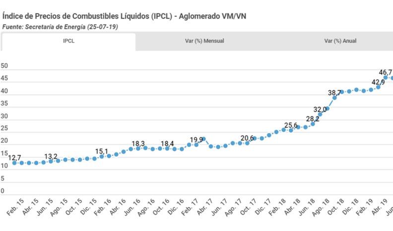 El IPCL en junio del año pasado marcaba que el valor del combustible líquido estaba en los 28,2 pesos por litro. Un año después, la misma medición muestra que el valor creció casi 20 pesos (47,4 pesos es el último registro que contabilizó el OIR).
