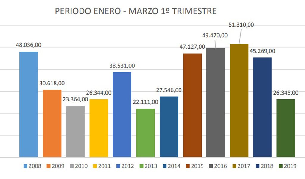 El brusco descenso que mostró el sector para los meses de enero, febrero y marzo evidenció una caída del 41,8 por ciento en comparación con igual período de 2018. Esto a partir de que el total del año pasado en metros cuadrados sumó 45.269 metros cuadrados, mientras que en este 2019 llegó a 26.345.