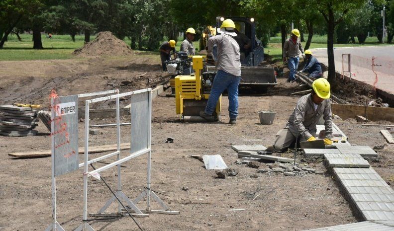 La obra de Parque Pereira y Domínguez, realizada por los gobiernos provincial y municipal para dotar a la ciudad de un predio verde completamente refuncionalizado, avanza en el sector de Rawson y bulevar España.