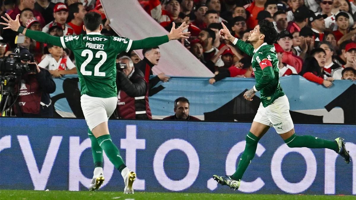 A los 43 minutos del complemento, Martínez Quarta descontó para River ante Palmeiras: con un remate desde media distancia, el defensor corrió con la fortuna que la pelota se desvió en un jugador del equipo brasileño y descolocó al arquero Weverton que se movió a un lado, observando como terminaba ingresando la pelota.