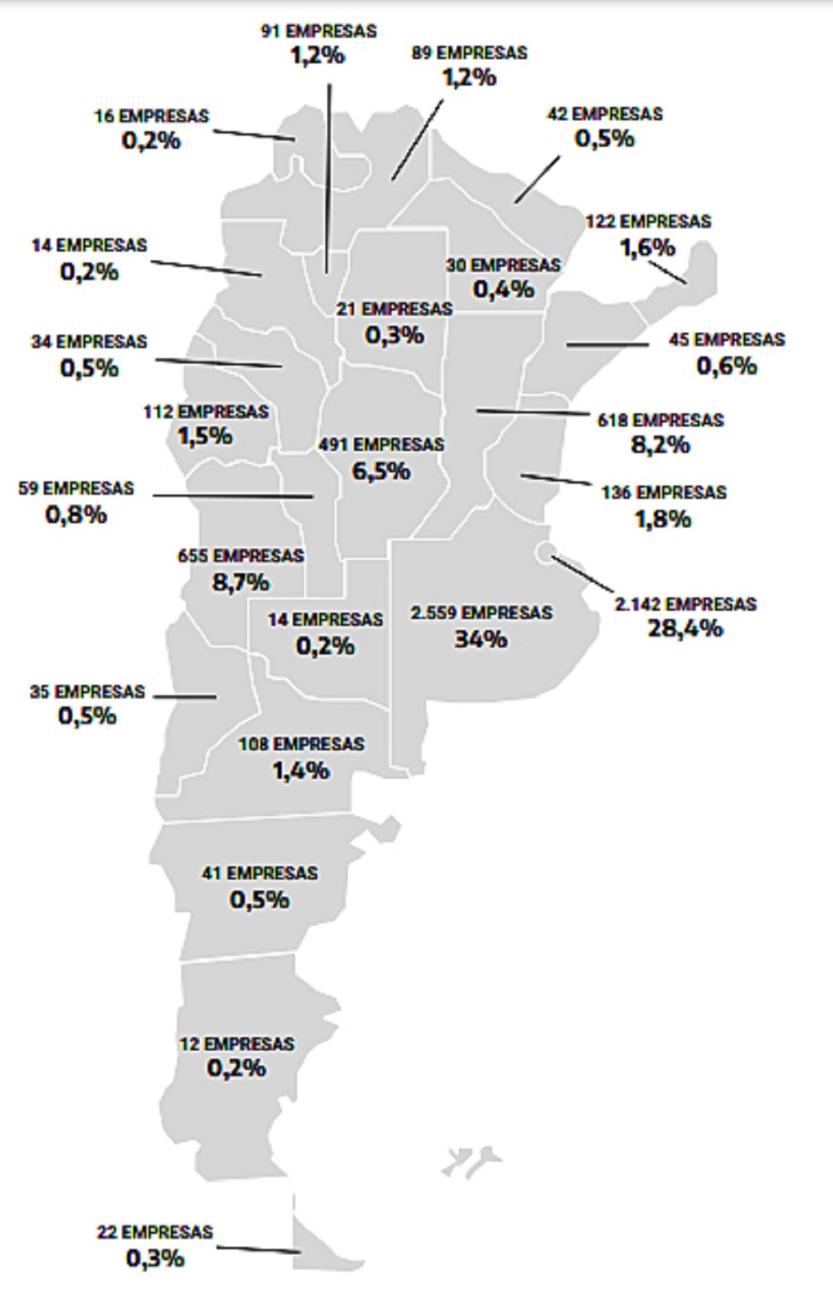 Las provincias con mayor crecimiento en la cantidad de empresas fueron: Entre Ríos (+20 respecto de 2021), Misiones (+12), Tierra del Fuego (+9), Formosa (+7) y Río Negro (+5).